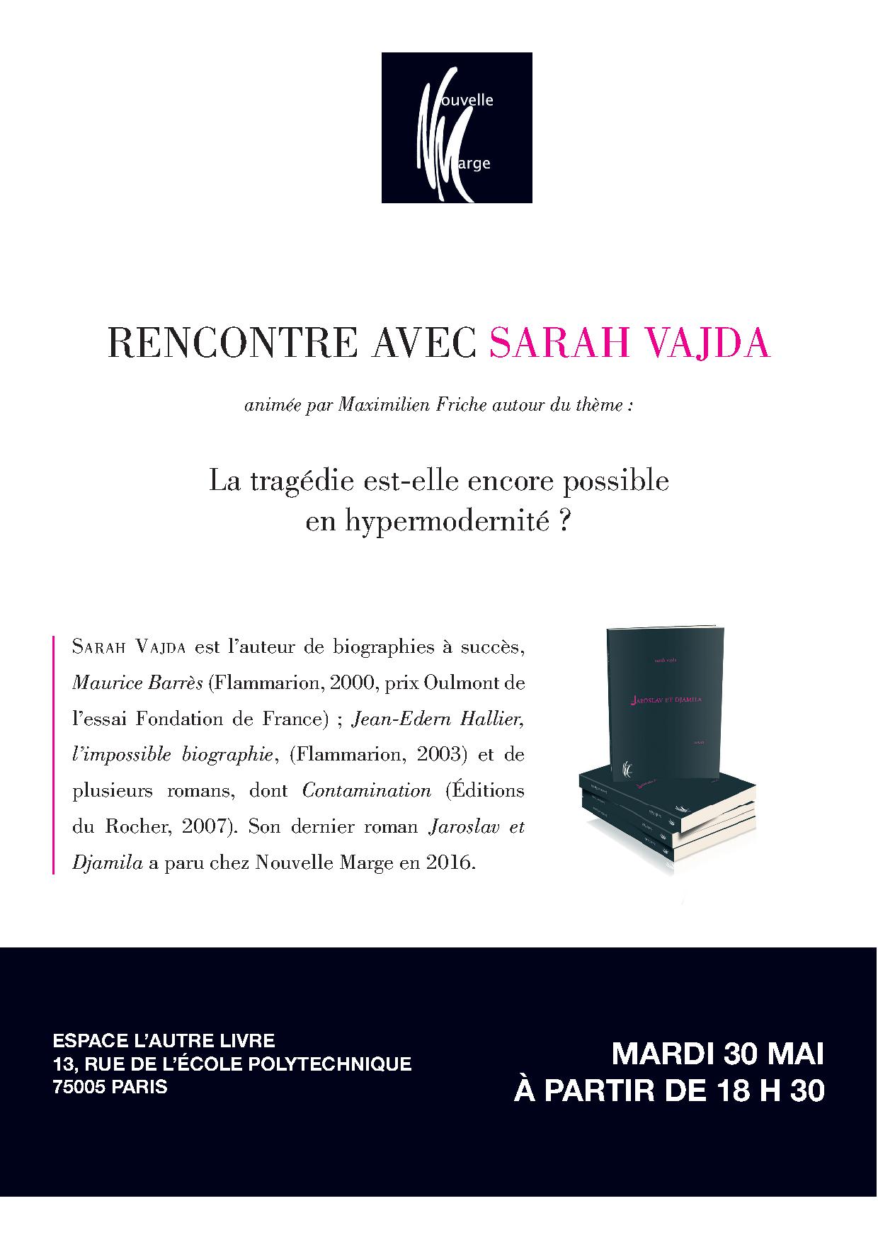 Sarah Vajda est l'auteur de biographies à succès, Maurice Barrès (Flammarion, 2000, prix Oulmont de l'essai Fondation de France) ; Jean-Edern Hallier, l'impossible biographie, (Flammarion, 2003) et de romans dont Contamination (Editions du Rocher, 2007).